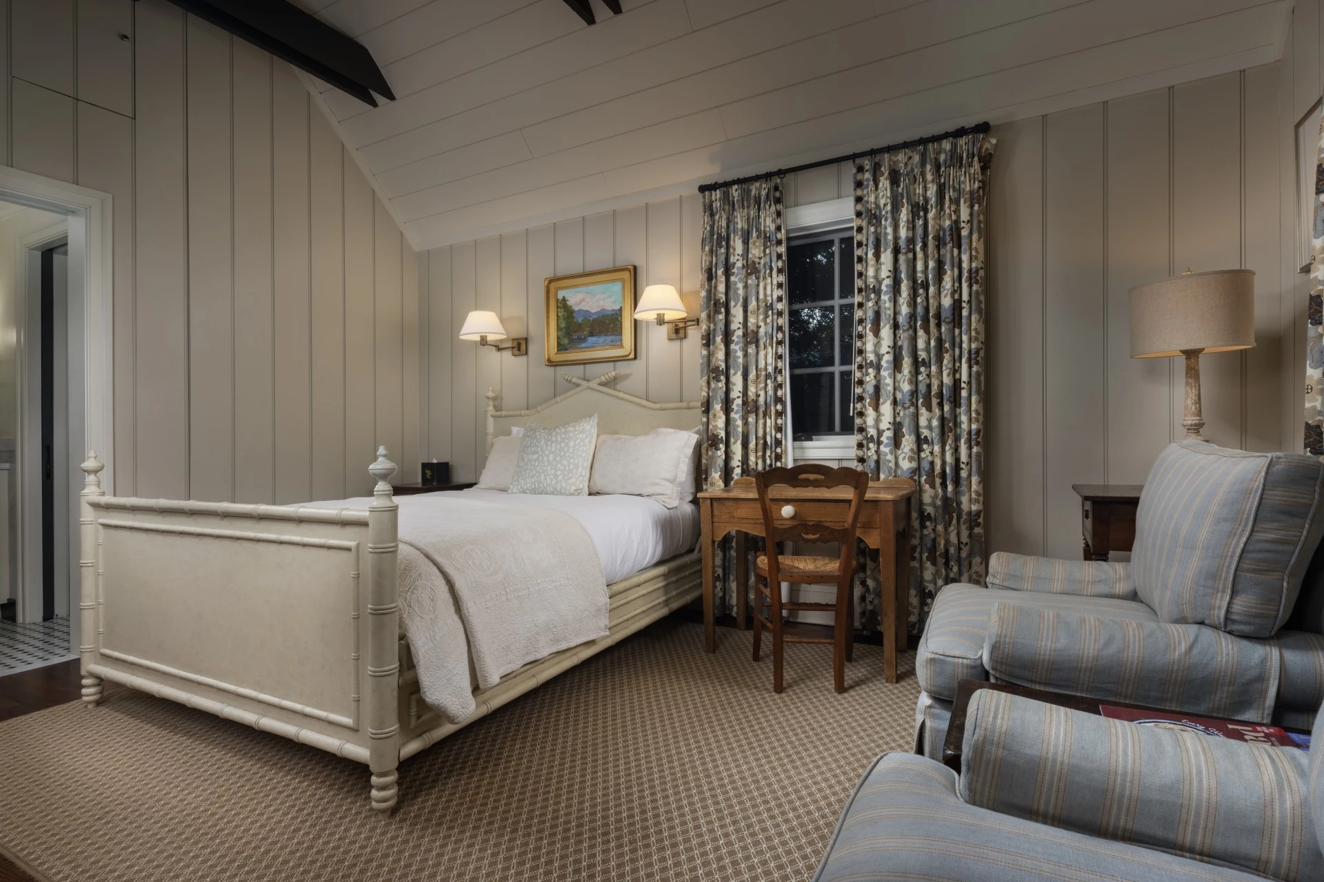 Step into the charming free-standing Falls King Cottage, featuring a king-size bed, a cozy sitting area, and an bathroom with a combination shower and bathtub, enhanced by heated marble floors. Enjoy each cottage’s individual character courtesy of distinctive layouts and unique decorative details.