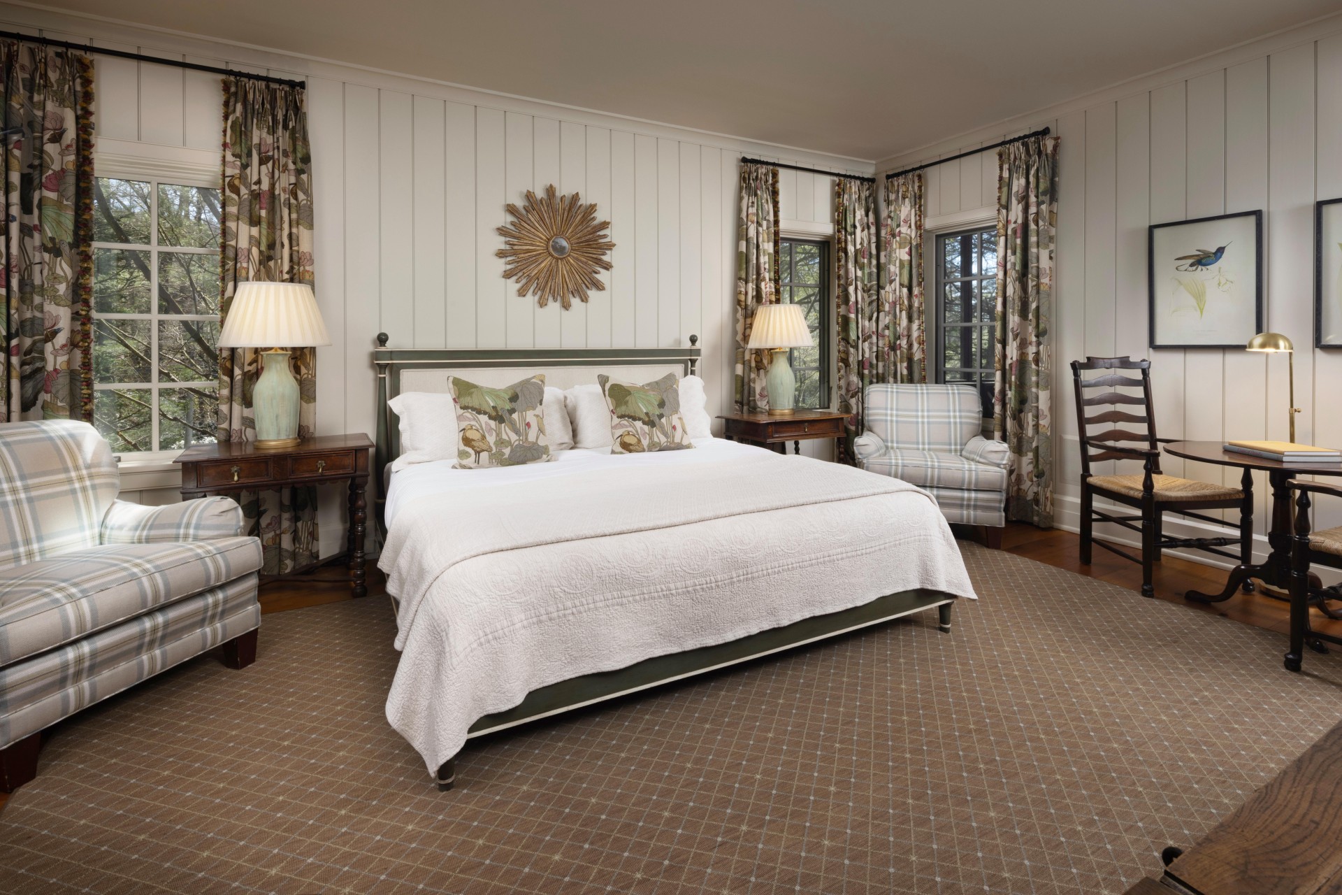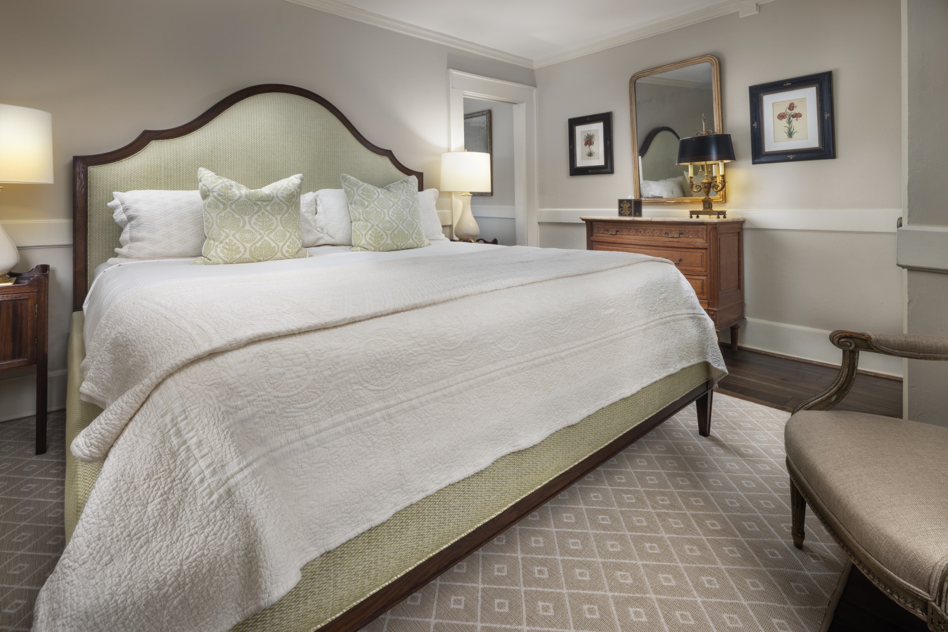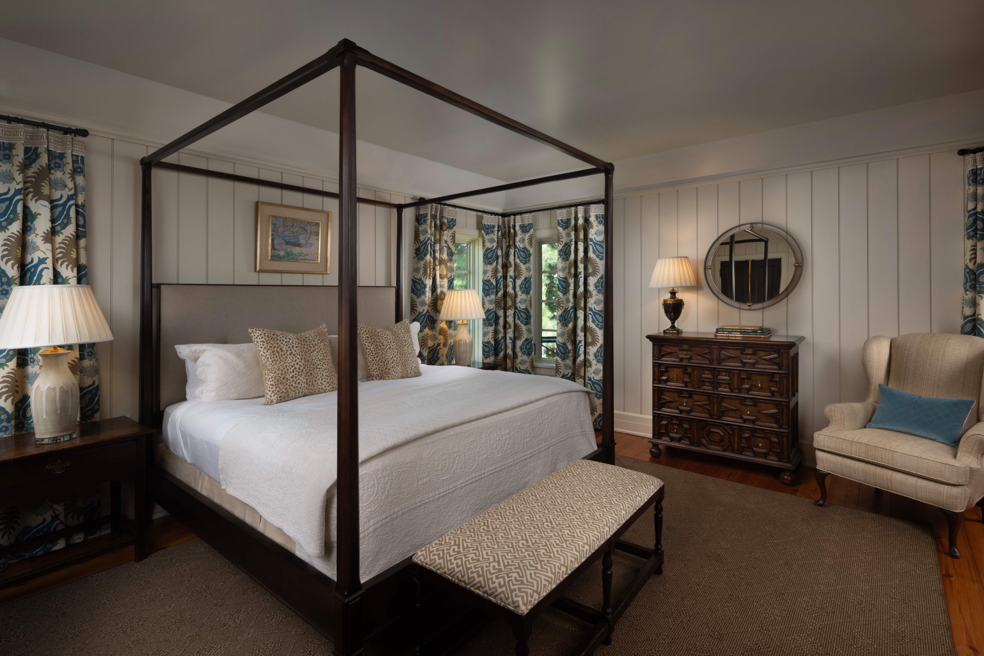 Unwind in ground-floor, English-inspired accommodations. Each unique room features a king-size bed, oriental rugs, antiques, and a screened-in porch. Spacious en-suite bathrooms have Jacuzzi tubs, separate showers, dual vanities, and heated marble floors. Reserve these individually or together.