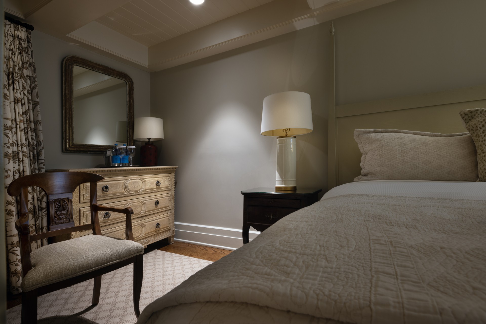 Relax in rooms featuring a king-size bed and a private porch. Bathrooms include heated marble floors and either a combination tub and shower or a walk-in shower. As with all accommodations at Old Edwards, each room’s unique appeal is defined by its singular décor and layout.