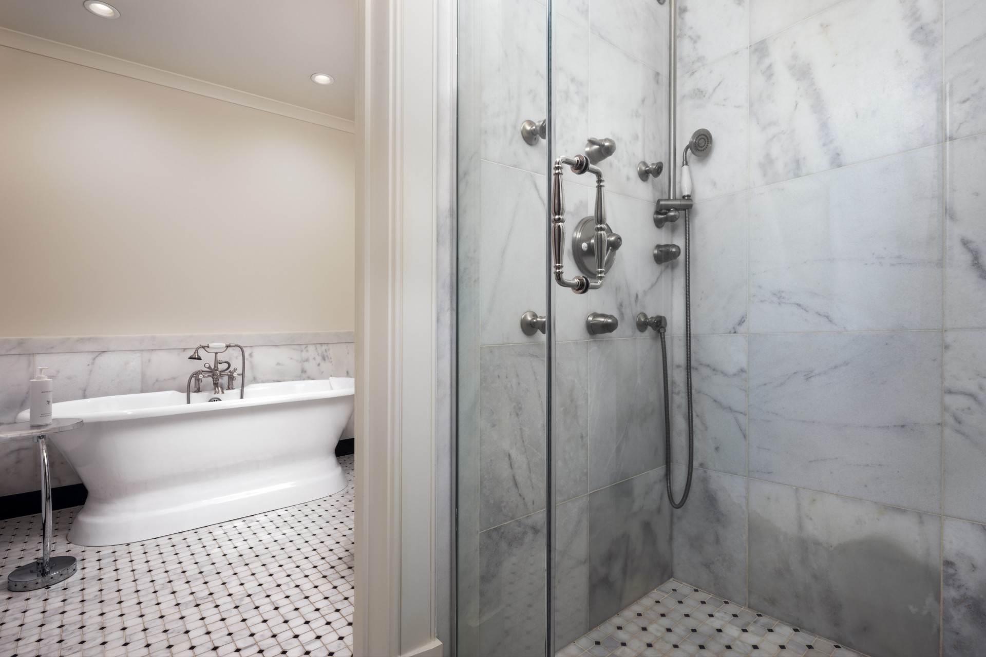 Uniquely inviting, this spacious non-traditional suite features a plush king-size bed, a fireplace, a large sitting area, and a lovely patio. The bathroom is equipped with a shower and heated marble floors. This room also offers ADA features to better suit your needs.